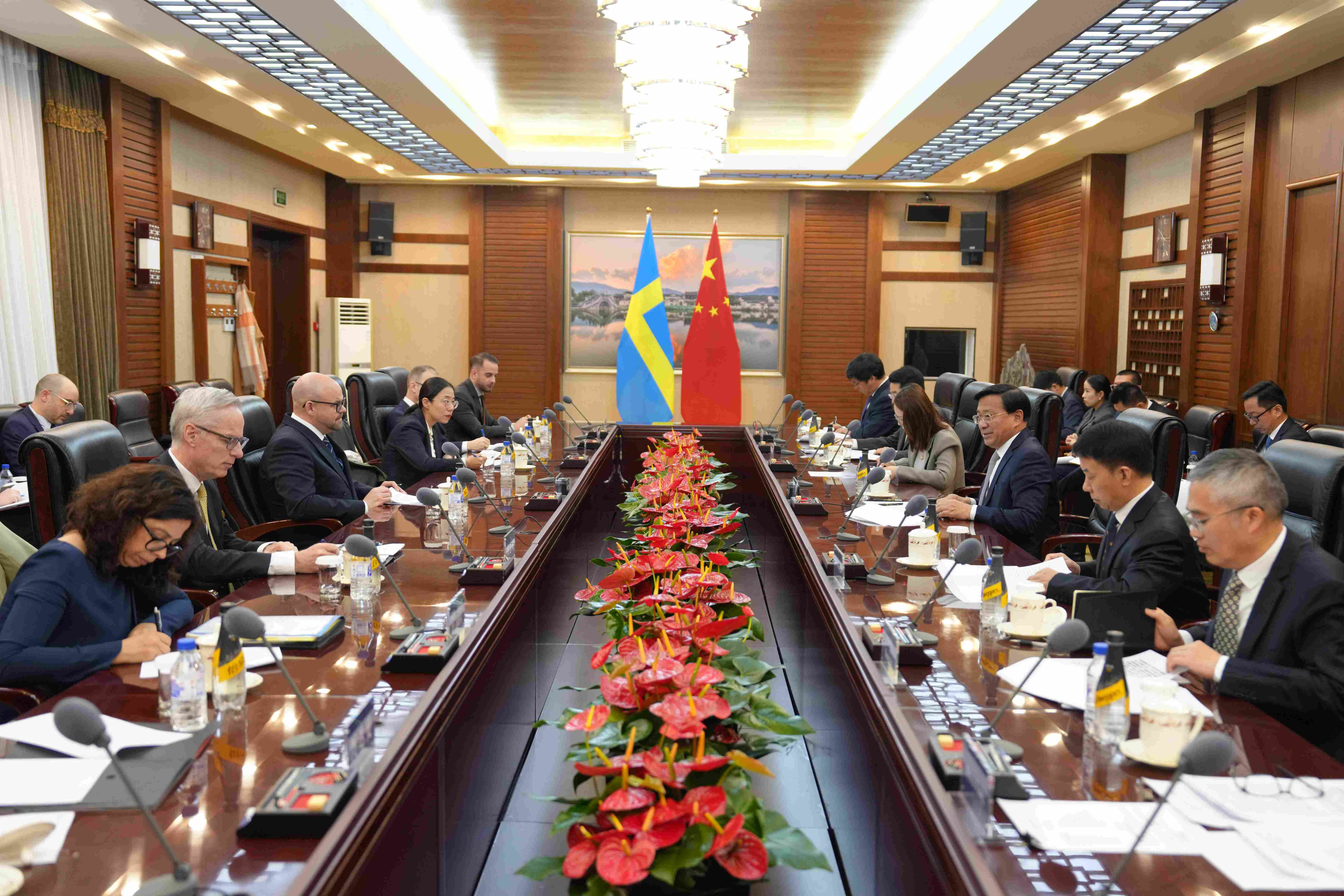 11月7日,农业农村部部长韩俊在京会见瑞典农村事务部部长皮特·库勒格伦,双方就推进中瑞农业农村领域务实合作交换意见。